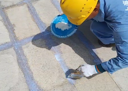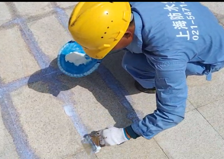 第二步:在瓷磚縫處涂刷濃縮厚質型涂料。剛開始涂刷時涂料是乳白色,干后透明色,涂刷第2或3遍時,一定要待前道涂膜干透現透明色時才能施工,也可大面積刮涂或刷涂施工。